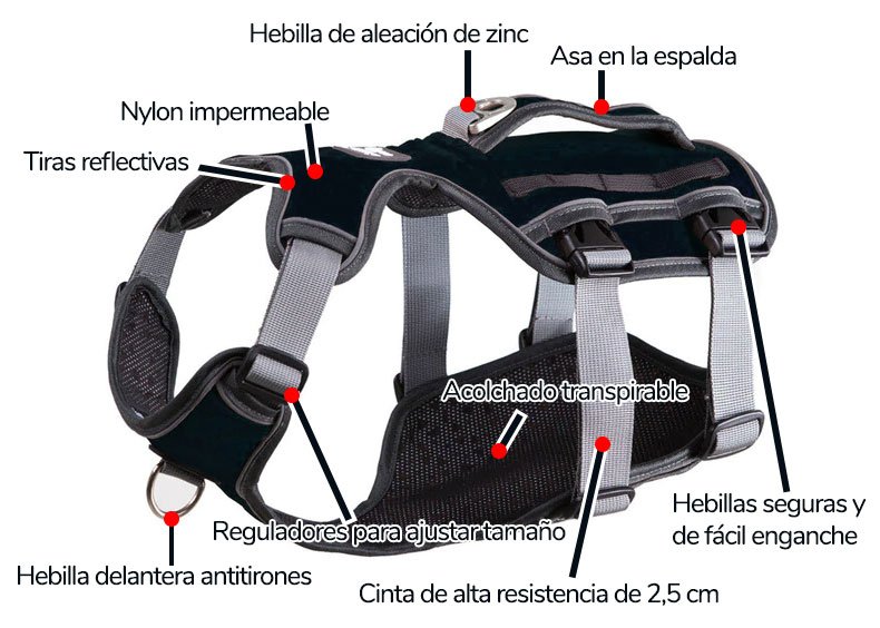 El Arnés Training está diseñado para ayudar a perros a subir obstáculos, se usa para perros de trabajo, para montañismo, también en perros con dificultad al caminar. Su asa en la espalda más los puntos de apoyo en el pecho y abdomen lo hacen único al distribuir el peso en toda esa zona evitando lastimaduras.