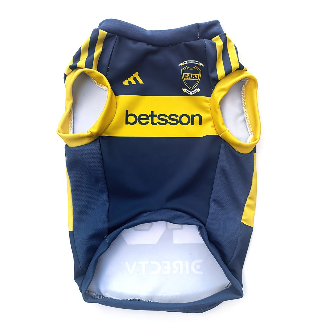 Camiseta de Boca Juniors temporada 25/26 120º aniversario. Confeccionada en lycra elastizada (tela más resistente que las camisetas del mercado), se adapta perfectamente al cuerpo de tu mascota, proporcionando un ajuste cómodo y seguro. A los costado tiene cool dry, para mejorar la aireación.