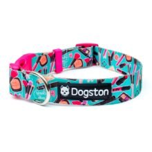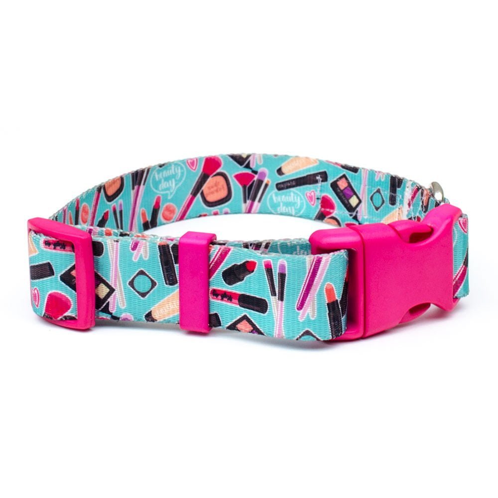 Este collar para perros y gatos está diseñado para las más coquetas 🐩. Elaborado con cinta de poliéster suave y resistente. El collar es flexible, dispone de una hebilla plástica fucsia y una etiqueta de goma con el logo “Dogston”. El estampado de maquillaje es de calidad, con colores brillantes. Las costuras son robustas.