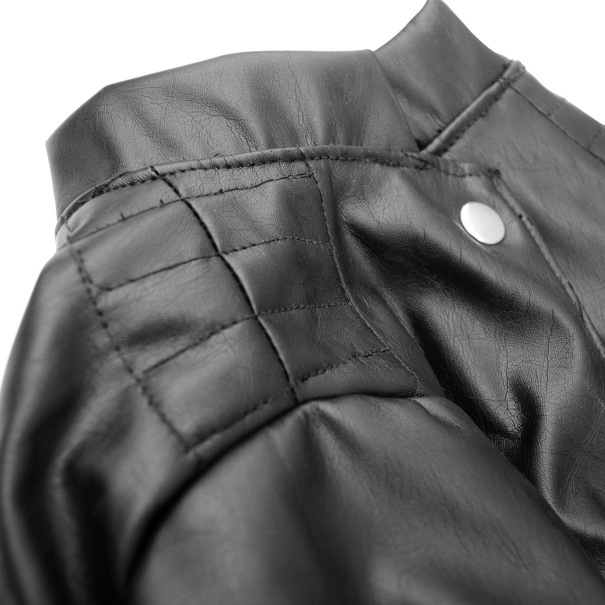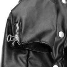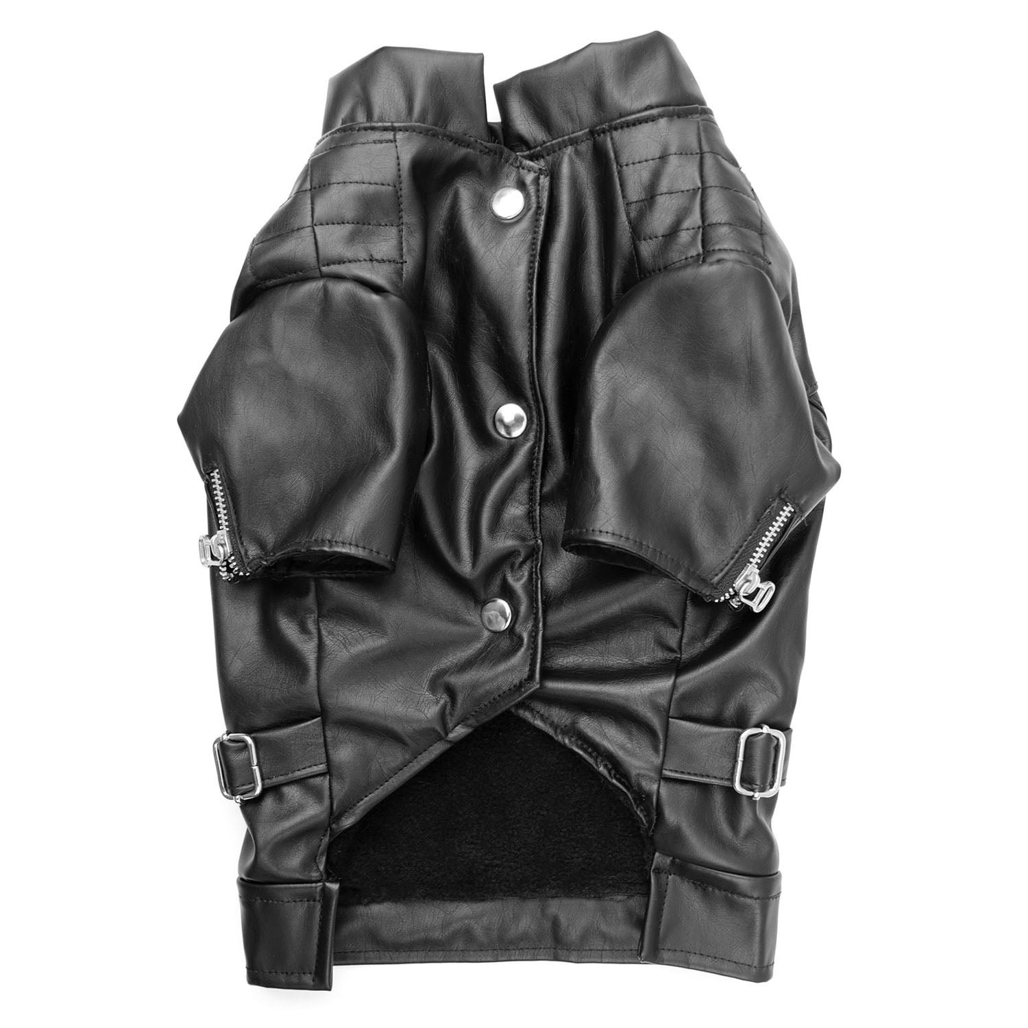 Campera de simil cuero engomado. Forrado en polar. Cierra con broches metálicos color níquel. Cierre en manga y regulador en cintura decorativos.